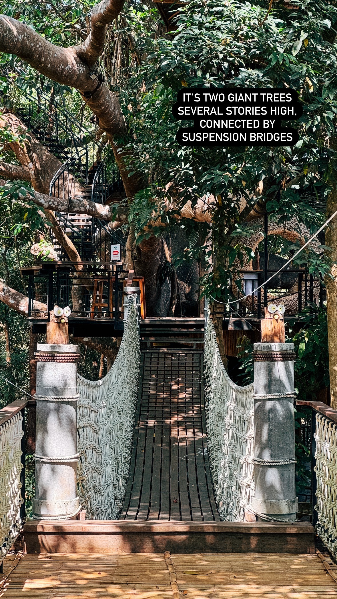 A multi-story treehouse oasis